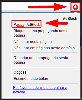 No canto superior direito do Chrome ou Firefox, clique no ícone da ABP, e desmarque a caixa "Ativar Adblock Plus".